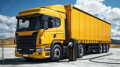 electric, truck, transportation, charging, vehicle, renewable, energy, sustainable, technology, future, commercial, delivery, yellow, lorry, trailer, industrial, motor, transport, clean, environment, alternative, power, equipment, modern, design, business, logistic, road, outside, daylight, sunny, copy space, freight, industry, renewable energy, clean energy, urban