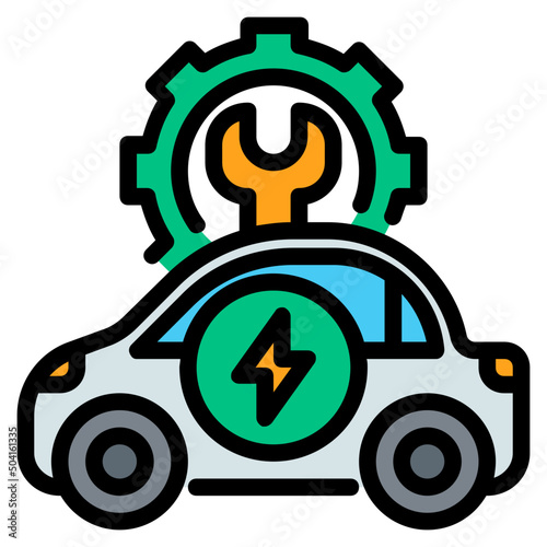 electric, vehicle, car, hybrid, automotive, service, repair, maintenance, fix, icon, colours, line, graphic, illustration