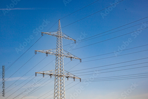 electrical, pylon, blue, cable, danger, distribution, electric, electricity, energy, high, horizon, industrial, industry, landscape, line, metal, nature, network, pillar, power, sky, steel, supply, tower, transmission, wire