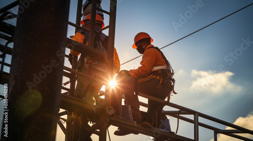 electric, climbing, maintenance, labor, energy, cable, construction, service, blue, professional, electricity, electrical, post, safety, pole, voltage, line, men at work, electrician, power, dangerous, adult, people, repairman, working, wiring, person, man, accident, industry, technician, steel, house, wire, crew, manual, journeyman, current, cloud, connection, breakage, protection, damage, sky, tool, distribution, system, wire, hard hat, job