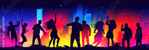 music, disco, nightlife, silhouette, party, crowd, night, young, event, dance, festival, people, light, concert, background, fun, rock, audience, stage, fan, pop, club, cheerful, performance, entertainment, live, celebration, hand, popular, group, nightclub, black, clubbing, sound, dj, show, motion, happiness, art, human, spectator, dancing, excitement, actor, movement, banner, generative, ai
