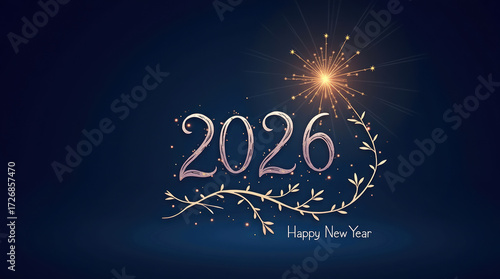 celebration, 2026, new, year, fireworks, sparkler, gold, rose, leaf, branch, blue, dark, night, elegant, festive, winter, holiday, greeting, card, design, illustration, graphic, twig, floral, sparkling, shiny, bright, light, happy, positive, joyful, hope, future, occasion, new year, fireworks, symbol, eve, decoration, snowflake