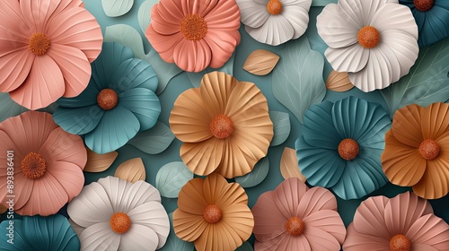 Elegant 3D floral designs with abstract foliage, creating a sophisticated background