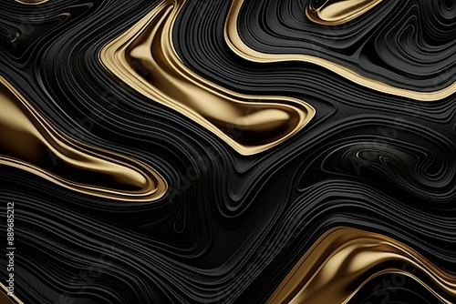 Elegant Abstract Acrylic Painting on Dark Background with Gold Brush Strokes