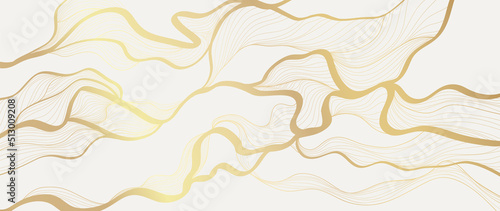 Elegant abstract line art on white background. Luxury hand drawn with gold wavy line and watercolor. Shining wave line design for wallpaper, banner, prints, covers, wall art, home decor.