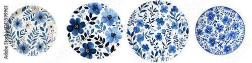 Elegant and Feminine Floral Patterns in Shades of Blue and White with a Vintage Retro Aesthetic Perfect for Textile Wallpaper Invitation Scrapbook and Other Creative Design Applications