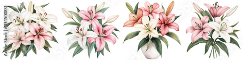 flower, floral, bouquet, lily, lily, arrangement, flora, plant, blossom, nature, bloom, elegant, romantic, decorative, centrepiece, spring, summer, fresh, beautiful, vibrant, pink, white, green, leaf, vase, still life, art, digital, design, graphic, clip art, decor, aesthetic, feminine, delicate, soft, graceful, lush, natural