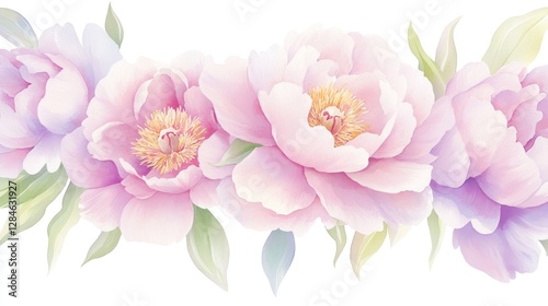 Elegant and lush watercolor peonies in blush pink and deep magenta bloom in a garden of romantic charm and artistic beauty