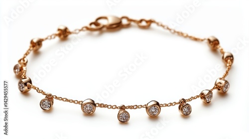 Elegant anklet with fine gold chain and diamond charms, isolated on white background