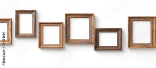 Elegant arrangement of wooden photo frames on a clean white background perfect for displaying cherished memories and personal moments