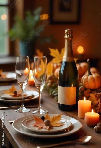 autumn, celebration, dining, festive, season, holiday, gathering, dinner, table, setting, elegant, romantic, cosy, warm, intimate, tradition, harvest, thanksgiving, seasonal, decor, food, drink, wine, champaign, goggles, candle, light, glow, bokeh, pumpkin, leaf, nature, outdoors, indoor, home, family, friends, guest, welcome, special, occasion, event, mood, atmosphere, rustic, organic, natural, abundance
