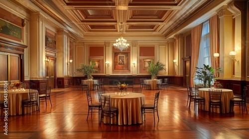 banquet, hall, elegant, decor, interior, lighting, table, chair, event, venue, wood, floor, flower, painting, chandelier, atmosphere, formal, space, luxury, arrangement, celebration, party, reception, gathering, architecture, design, ornate, column, historical, roomy, window, curtain, ambience, comfortable, seating, hospitality, modern, classic, evening, upscale, stylish, social, private, ceremony, presentation, organisation, setup, professional