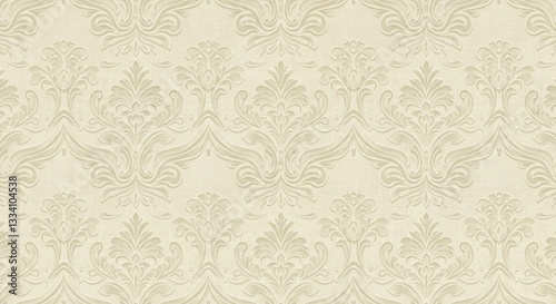 Elegant Beige Damask Wallpaper with Classic Floral Motifs
