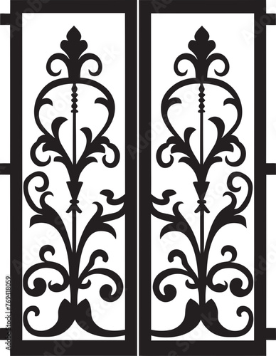 Elegant Bi Fold Garden Passage Sleek Black Vector Antique Iron Bi Fold Gate Black Emblem Icon