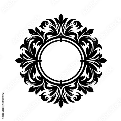 vector, floral, frame, ornament, graphic, design element, decorative, badge, monochrome, emblem, logotype, vintage, retro, classic, circle, leaf, flourish, filigree, wedding, invitation, border, elegant, pattern, template, heraldic