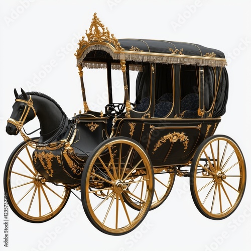 Elegant Black and Gold Horse-Drawn Carriage with Intricate Design and Vintage Charm