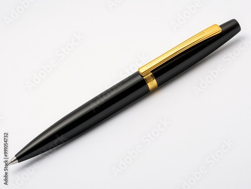 Elegant Black and Gold Pen on White Surface - Minimalist Luxury Stationery Concept