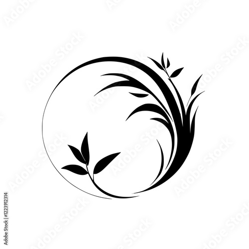 vector, floral, leaf, black, white, design, circle, elegant, nature, plant, illustration, graphic, art, decor, monochrome, minimal, abstract, pattern, background, symbol, stylish, modern, frame, botanical, flourish