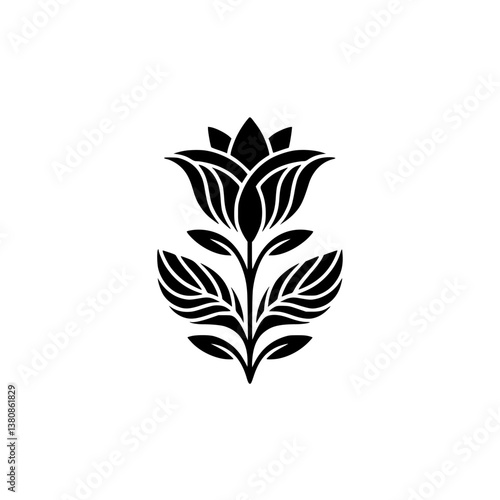 vector, floral, flower, blossom, leaf, plant, black, white, illustration, graphic, design, minimalist, art, emblem, logotype, nature, botanical, symmetric, ornament, decorative, elegant, clean, isolated, organic, vintage