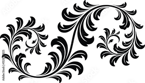 Elegant Black and White Floral Design Swirls Perfect for Invitations Cards and Decorative Projects, silhouette