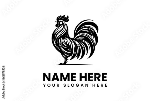 Elegant Black and White Rooster Logo Design.