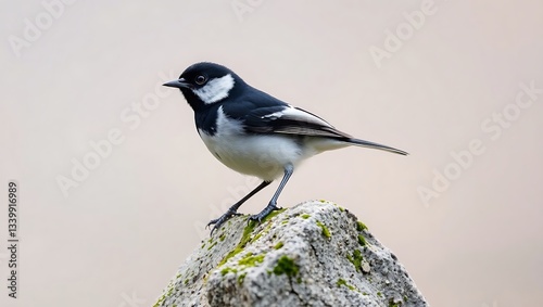 "Elegant Black and White Songbird on Stone – Minimalist Beauty"