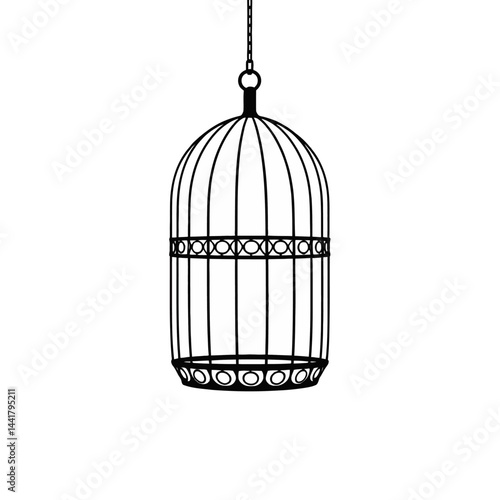 cage, bird, hanging, black, white, illustration, graphic, design, vector, isolated, background, empty, ornate, decorative, vintage, retro, classic, elegant, simple, minimalist, silhouette, line art, metal, iron, wire, pattern, symbol, freedom, captivity, hope, liberty, pet, animal, avian, home decor, print, tattoo, clip art, icon, graphic design, web design, branding, logotype, template, element, decoration, aesthetic