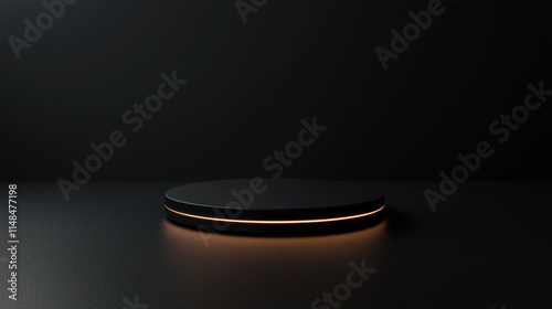 platform, circular, black, gold, accent, minimalist, three-dimensional, render, display, dais, stage, footed, racked, dark, light, glow, illuminated, modern, elegant, luxury, subtile, contrast, geometric, shape, design, background, studio, product, presentation, marketing, branding, graphic, illustration, abstract, simple, clean, smooth, texture, shiny, darkroom, isolated, empty