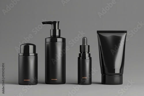 Elegant Black Cosmetic Bottles on Neutral Background
