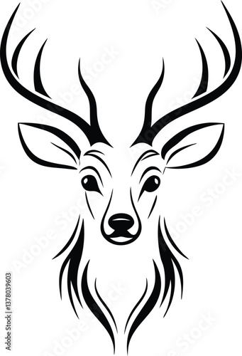 cervid, head, antler, silhouette, black, white, wildlife, art, design, logotype, animal, nature, graphic, vector, illustration, minimal, elegant, stylised, line art, drawing, icon, symbol, mammal, buck, stag, fauna, forest, wood, wild, print, image, graphic design, artwork, decorative, ornament, abstract, modern, vintage, retro, classic, stylish, beautiful, christmas, holiday, masculine, strong, regal