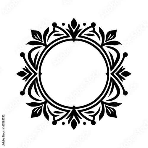 Elegant Black Floral Frame with Empty Circle, Vector Design
