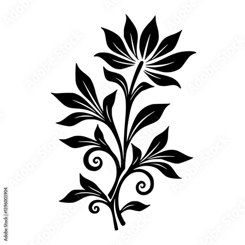 Elegant Black Floral Silhouette on White: Botanical Vector Design