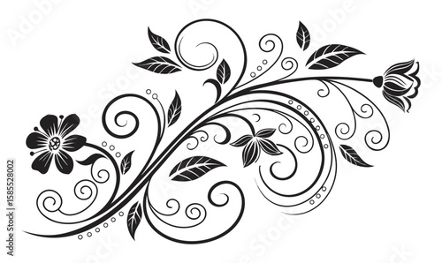 "Elegant Black Floral Vector Design Swirling Botanical Line Art Ornament"
