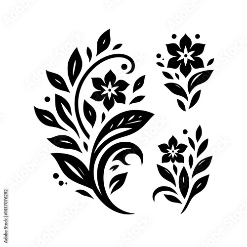vector, floral pattern, black-and-white, flower, leaf, ornament, decorative, elegant, botanical, set, illustration, graphic, isolated, pattern, nature, flourish, leaf, sprig, vintage, monochrome, stencil, clip art, tattoo, wedding, invitation