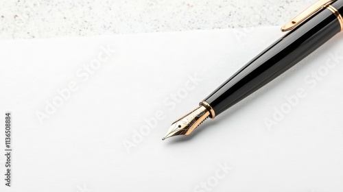 Elegant Black Fountain Pen on White Paper Close up