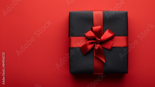 gift, box, black, red, ribbon, present, bow, elegant, luxury, celebration, birthday, anniversary, holiday, festive, stylish, beautiful, decorative, surprise, event, party, decor, wrapping, package, ornate, sophisticated, posh, modern, vibrant, attractive, design, ceremonial, delightful, bright, joyous, exquisite, chic, fashionable, eye-catching, premium, high-end, upscale, polished, refined, ai, generative