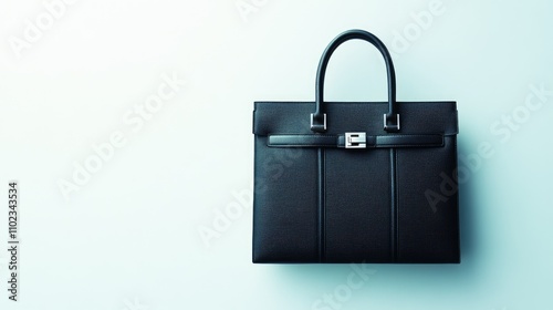Elegant Black Leather Handbag with Structured Design, Sleek Handles, Professional and Stylish Accessory for Business or Everyday Use