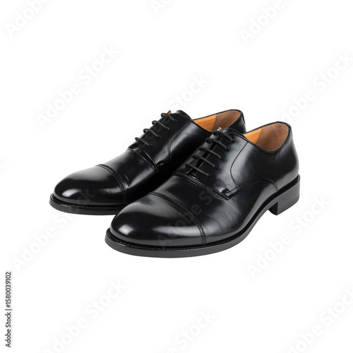 Elegant black leather oxford shoes for men formal wear on transparent background