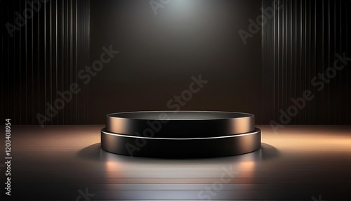 Elegant Black Minimalist Podium with Smooth Texture and Mysterious Lighting