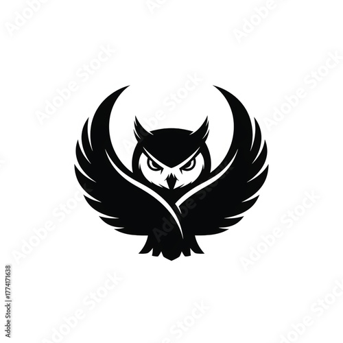 Elegant Black Owl Logo with Wings Spread Wide, Representing Wisdom and Knowledge
