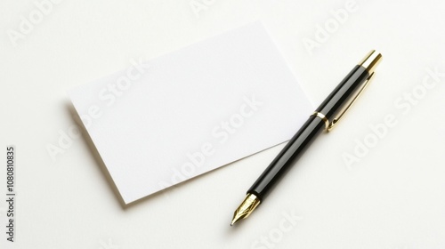 Elegant Black Pen Resting Next to a Blank White Card on a Minimalist Surface Ideal for Creative Ideas, Notes, or Professional Presentation