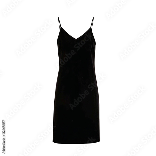 Elegant black slip dress with spaghetti straps on a white background embodying simplicity and sophistication