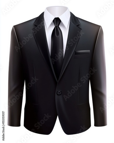 Elegant black suit featuring a classic design with a tie, perfect for formal occasions.