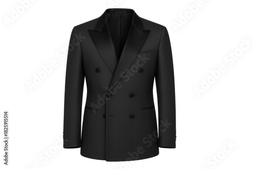 Elegant black tuxedo jacket, double-breasted, isolated on transparent background.