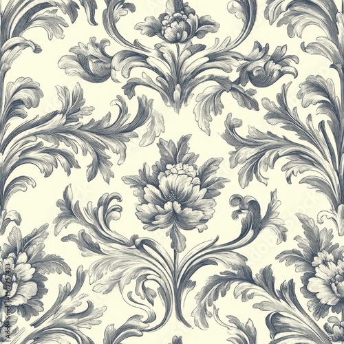 damask, pattern, floral, design, background, texture, wallpaper, fabric, vintage, antique, ornate, elegant, classic, sophisticated, decorative, repeating, seamless, blue, grey, cream, ivory, white, floral pattern, textile, surface, illustration, graphic, art, style, home decor, interior design, fashion, print, motif, scroll, leaf, flower, acanthus, rococo, baroque, victorian, regal, luxury, refined, detailed, intricate, geometric, symmetric
