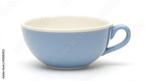 Elegant blue coffee cup on white background showcasing simplicity and style in beverage presentation. Perfect for café or lifestyle themes.