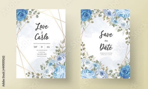 elegant blue floral wedding invitation template