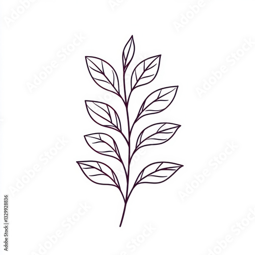 Elegant botanical illustration of a leaf branch with detailed outlines. isolated on white background.