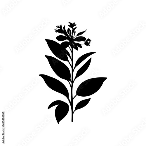 Elegant botanical illustration of blooming plant silhouette against a white backdrop