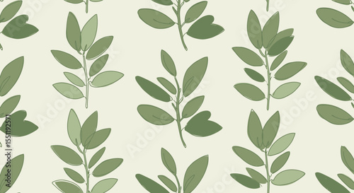 Elegant botanical pattern featuring hand-drawn green leaves on a neutral background
